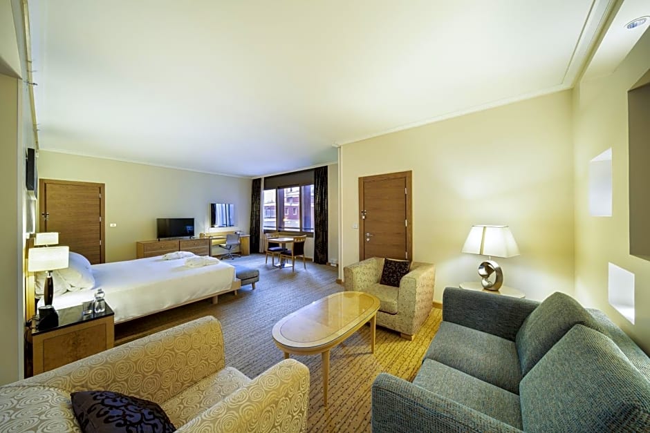 The junior suite includes access to the Executive Lounge where you can enjoy complimentary breakfast and refreshments. It features an extra-large bed, a work desk with ergonomic chair, a sofa and fluffy bathrobe.